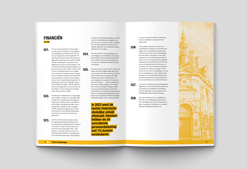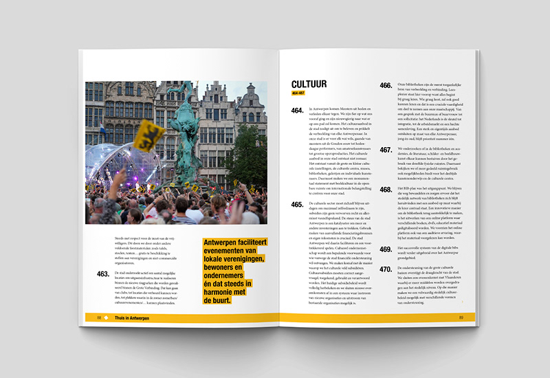 Ontwerp en lay-out van het verkiezingsprogramma van de stad Antwerpen. In samenwerking met De Geuzen.